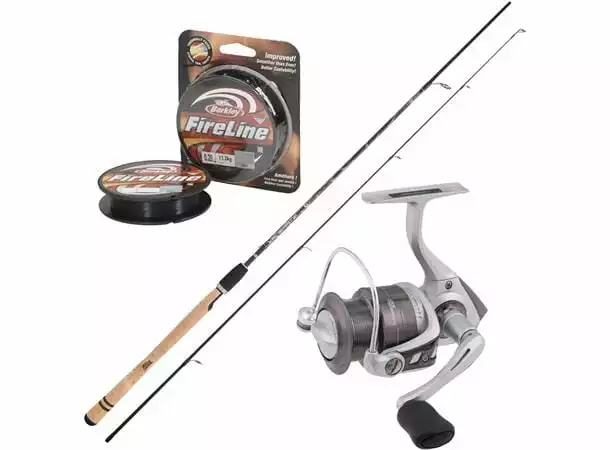 Abu Cardinal 104F har 5 kulelager, et seneopplegg som sikrer lange kast og et bremsesystem som er perfekt for stor fisk. Berkley Lightning 9 fot stang, for sluker mellom 15-40g, har i en årekke vært en favoritt blandt norske sportsfiskere. Utstyret leveres med 270m råsterke Fireline 0,20mm som sikrer fangsten.