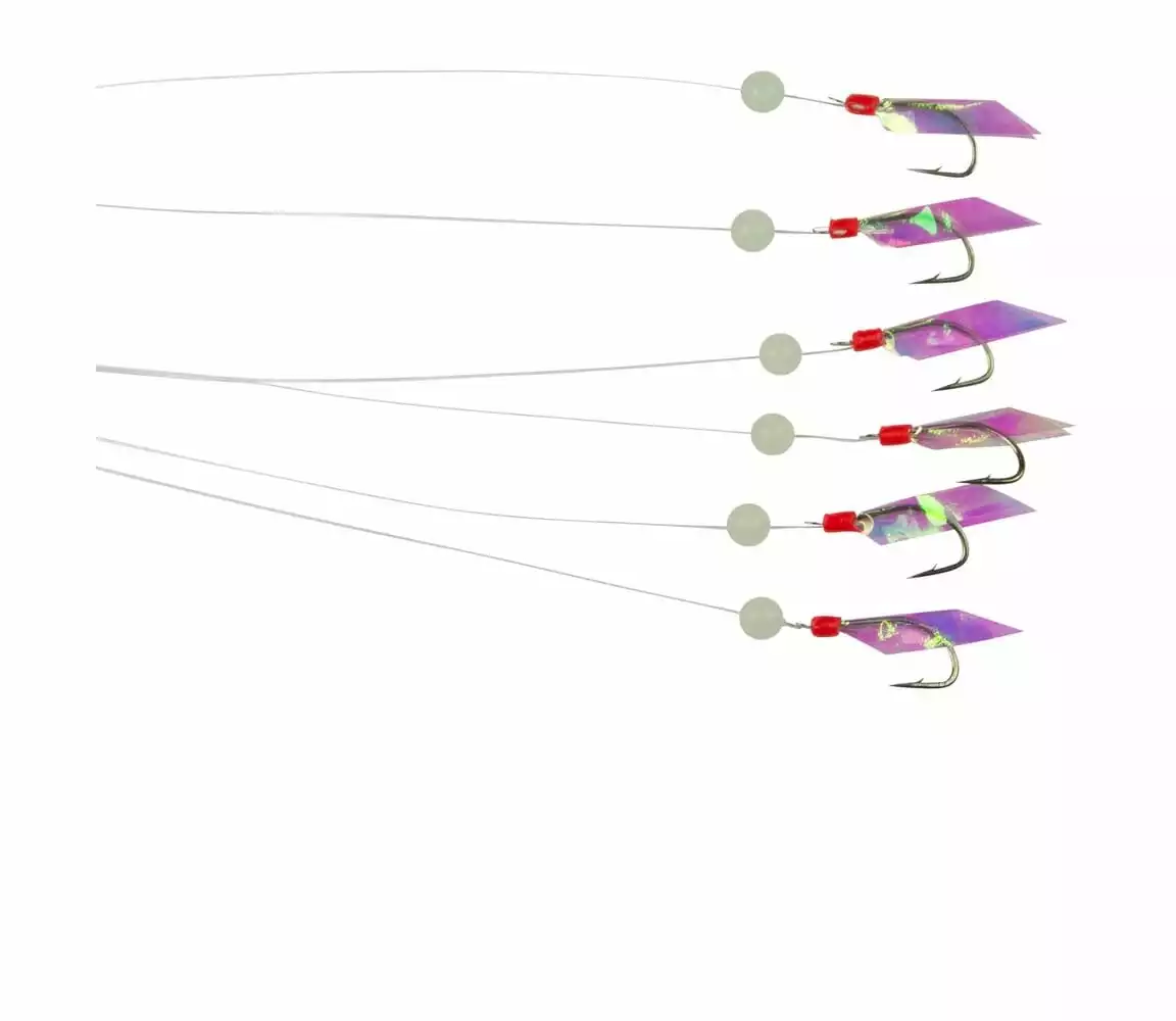 Monteres på fiskeharpe eller stang med søkke eller pilk i enden. Eller brukes som opphenger ved kasting fra land. 6 kroker.