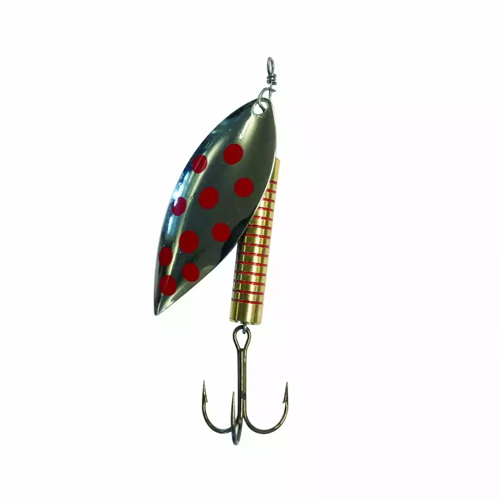 Laksespinner til nedstrøms spinnerfiske etter laks. Spinnerbladet roterer lett når man fisker seg nedover med strømmen.