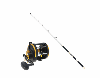 Supert båt- og havfiskesett som består av Lerøyosen 6,6′ 30lbs, Penn Squall 50 LW påspolt med backing og 300m mulitfilamentsene.