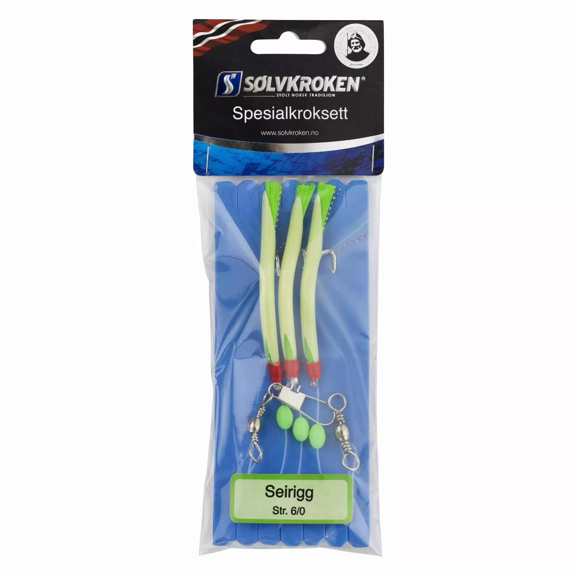 Sølvkrokens spesialkroksett er ypperlige til stangfiske fra båt. Settet har tre opphengere på en 160 cm lang line. Kroksettet er montert på en praktisk skumplate, som også er ypperlig til oppbevaring når kroksettet ikke er i bruk.